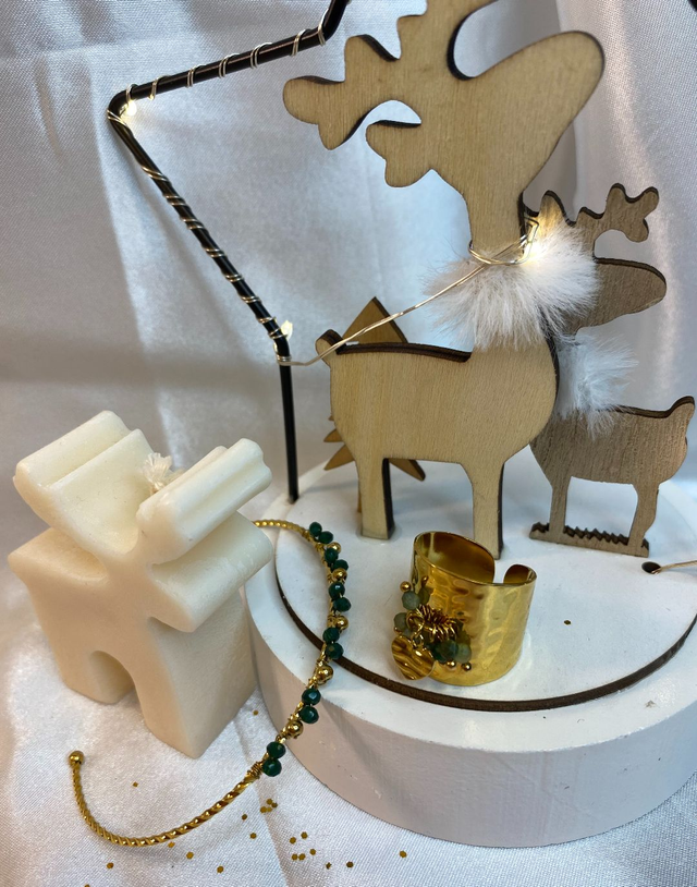 Chaque bijou est soigneusement présenté dans un emballage aux couleurs de Noël, prêt à être offert.