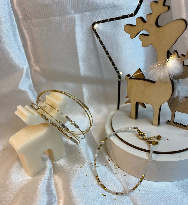Chaque bijou est soigneusement présenté dans un emballage aux couleurs de Noël, prêt à être offert.